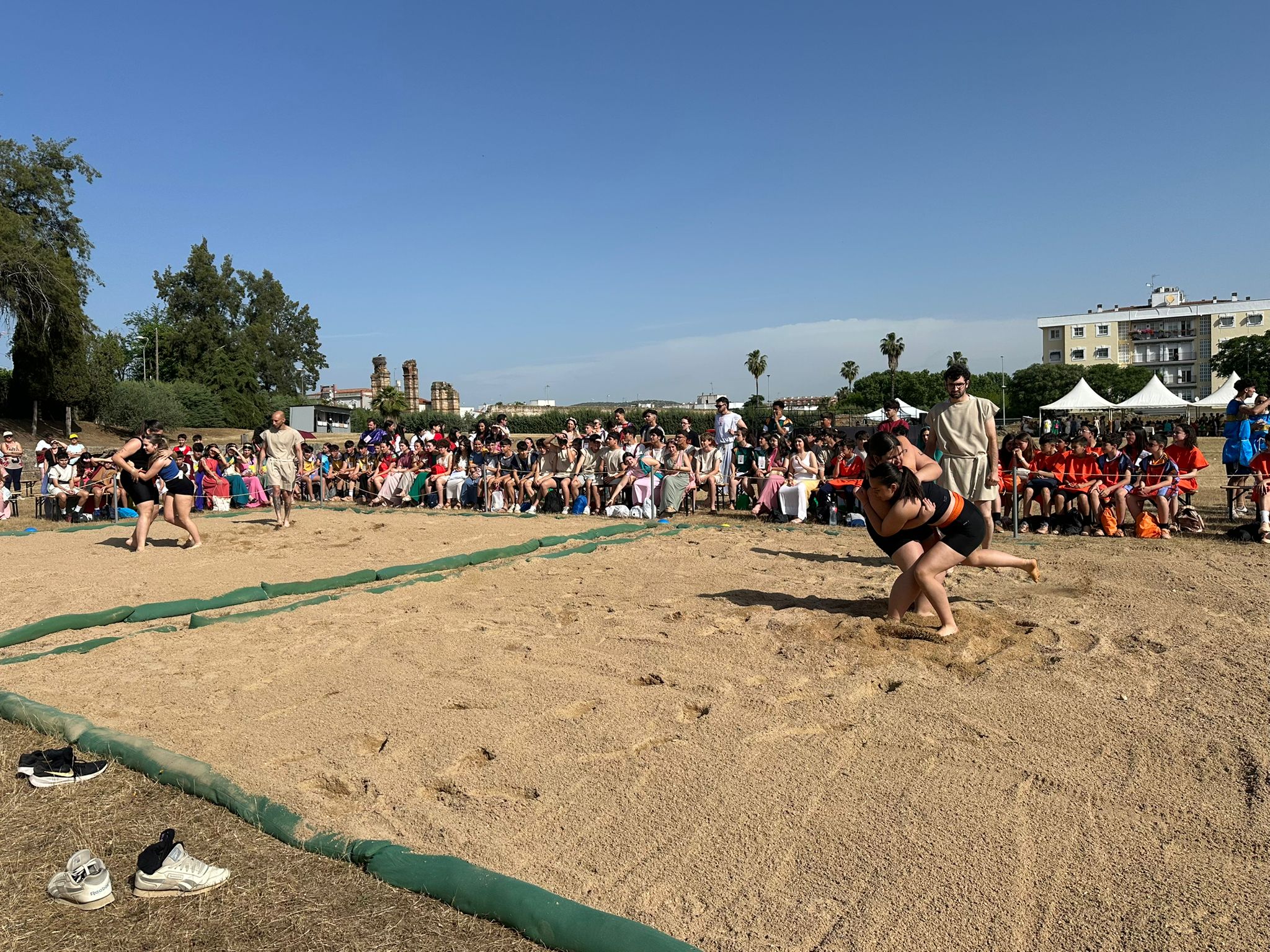 En esta primera edición participan alrededor de 300 alumnos y alumnas procedentes de 15 institutos de Mérida, de distintas localidades de Extremadura y de la Comunidad de Madrid, que toman parte en diversas competiciones deportivas inspiradas en el mundo clásico, transformando el recinto romano en un auténtico espacio de recreación histórica.