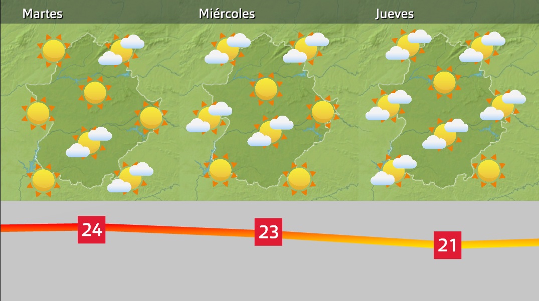 A pesar de la estabilidad, un frente que asomará desde el Atlántico nos enviará nubes altas durante toda la jornada. Serán más abundantes en el tramo central del lunes, aunque no nos anuncian lluvias. Nubes que permitirán que tengamos un día en general soleado en Extremadura.