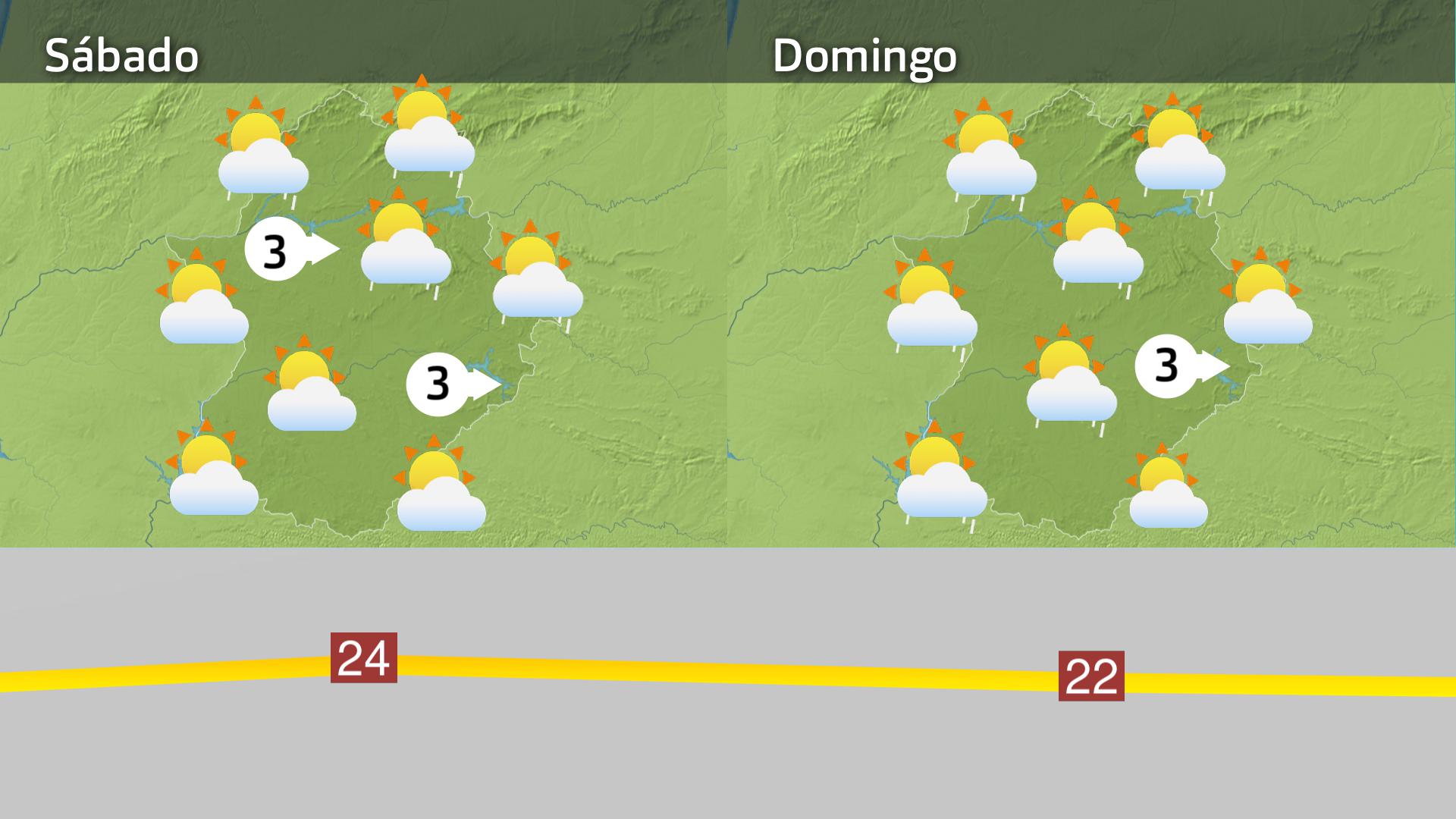 Así, el sábado comenzará con cielos cubiertos en las sierras del norte, con lloviznas intermitentes. Alternancia de más claros que nubes cuanto más al sur, con menor posibilidad de precipitaciones. El viento del oeste soplará con fuerza, amainando según se acerque la noche. El domingo será un día más tranquilo aunque por la tarde es fácil que se desarrollen nubes de evolución con la posibilidad de chubascos. Temperaturas estables.