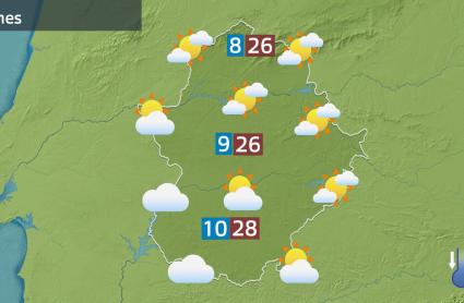 Tarde de plena primavera en la región con ambiente soleado, pese a la presencia de algunas nubes de tipo alto, y con temperaturas muy agradables. Incluso han sido cálidas en zonas de la vega del Guadiana, donde se han alcanzado los 30ºC tanto en Badajoz como en Mérida. En la cuenca del Tajo se han superado con facilidad los 27.