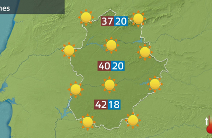 Las máximas se dispararán en la tarde del lunes con valores que llegarán a los 40 grados en muchas zonas. En las Vegas del Guadiana, la Siberia, la Serena o Tierra de Barros podremos alcanzar los 41 a 42 grados.