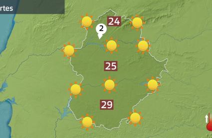 Todo además en un día que volverá a ser soleado en toda Extremadura. Nos hemos levantado de nuevo hoy sin nubes destacables y este martes habrá que esperar hasta el tramo final de la jornada para que comiencen asomar algunas nubes, altas y no demasiado compactas por el extremo occidental.