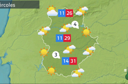 Así, el miércoles volverá a ser otro día de tiempo estable. Seguirán circulando nubes de tipo alto y medio, sobre todo. Más abundantes durante la mañana, se abrirán claros al mediodía y volverá la nubosidad durante la tarde. Las temperaturas podrán bajar un poco más en las comarcas del norte cacereño, con registros por debajo de los 10ºC en fondos de valle. Las máximas también perderán algún que otro grado en la mitad norte, pero se mantendrán en el resto. Pasaremos de los 30ºC en el Guadiana.