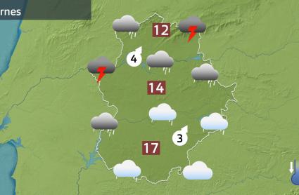 De hecho los avisos que se mantienen activos por lluvias para hoy aparecen solo, de momento, en el extremo norte y en Montánchez, Villuercas e Ibores. Avisos por lluvias que en 12 horas podrán sumar más de 60 l/m2 o que nos podrán dejar más de 20 l/m2 en 1 hora y además con posibilidad de granizo.