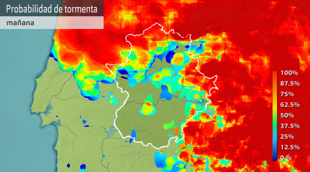 La mayor probabilidad de tormenta se dará a partir del tramo central del día en zonas de sierra como las Villuercas, las sierras del norte de Cáceres o el entorno de Montánchez. En el resto el ambiente será variable con poca probabilidad de lluvias intensas.