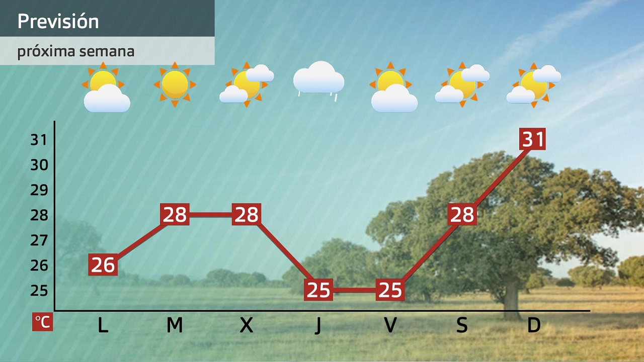 La calma que se iniciará mañana nos acompañará hasta el miércoles. En esa jornada contaremos ya con algunos chaparrones en el sudeste de Extremadura. El jueves un frente barrerá la región dejando de nuevo ambiente lluvioso y otoñal. Más tranquila será la recta final de la semana, en la que además cambiaremos de estación. Más sol y temperaturas de nuevo al alza.