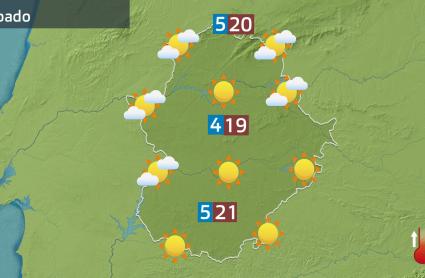 Se observa a 1500 metros de altura cómo el aire más cálido entra desde el suroeste, hecho que facilita ese ascenso térmico. Las máximas para este sábado y domingo vienen dadas por los 22 ºC que se verán en algunos termómetros del suroeste de Badajoz y por encima de los 15 ºC ya en casi toda Extremadura. Ambiente más que suave a mediodía, sobre todo al sol.