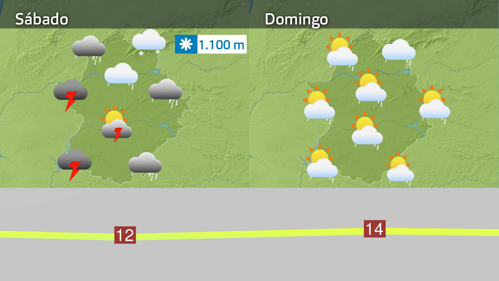 Por la mañana las precipitaciones ya no serán tan persistentes. El frente ya habrá cruzado la región, pero detrás llega mucha inestabilidad que se traduce en más precipitaciones aunque tengan carácter más intermitente. Hasta primera hora de la tarde la lluvia y los chubascos serán probables en toda la región. En forma de nieve por encima de los 1100 metros en el norte de Cáceres y Villuercas.