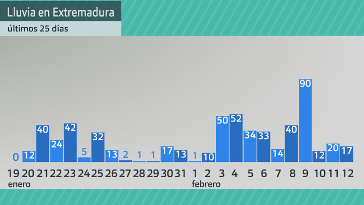 Prácticamente ha estado lloviendo a diario en Extremadura desde el 20 de enero