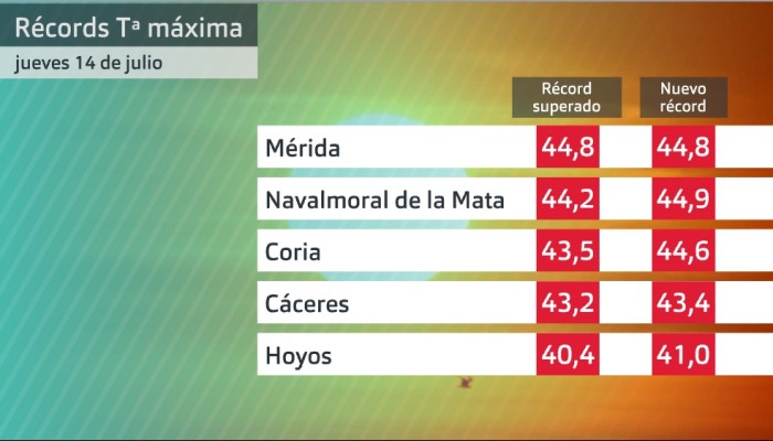 Si echamos un vistazo a cada uno de los días más calurosos en Extremadura, de los cinco primeros días, tanto Badajoz cómo Cáceres sobrepasan la ralla de los 42 ºC y todos los valores extremos datan del año 2000 en adelante salvo dos casos, uno en Cáceres con los 42,35 ºC del 23 de julio de 1945 y los 43,40 ºC del 23 de julio de 1995 en Badajoz. El resto de temperaturas medias de las máximas son de los últimos veinte años (2003-2022).
