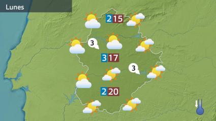 Las temperaturas tendrán algunos cambios con respecto a los de hoy. Sobre todo las mínimas porque se recuperarán, principalmente en zonas de montaña. Suben de forma general y las máximas bajarán hacia la mitad sur de la región. Ya no alcanzaremos valores próximos a los 25º C, pero sí superaremos los 20 ºC.