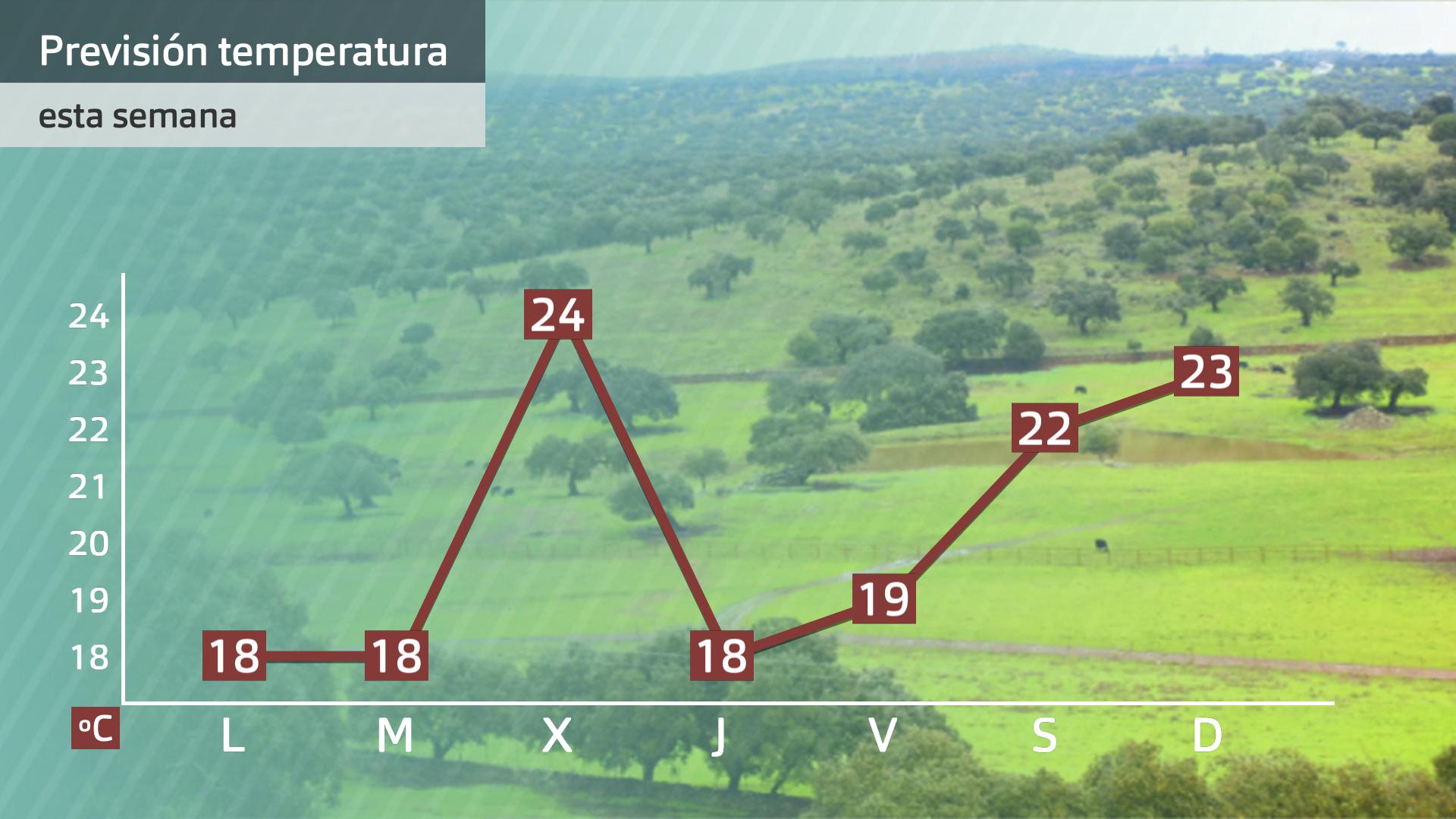 Las temperaturas mínimas irán en ascenso, quedándose muy altas en toda la región. Mientras que las máximas este martes se quedarán sin cambios. Pero para el miércoles sufrirán un brusco ascenso, y llegaremos a los 24 grados en la mitad sur de la región.