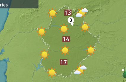 Y todo decíamos en un día que será soleado, la mañana aún nos deja algunas nubes bajas por el tercio sur y el sureste y bastantes nubes también enganchadas en zonas de vertiente norte sobre todo en las sierras del norte de Extremadura.