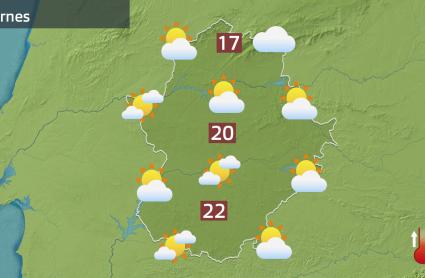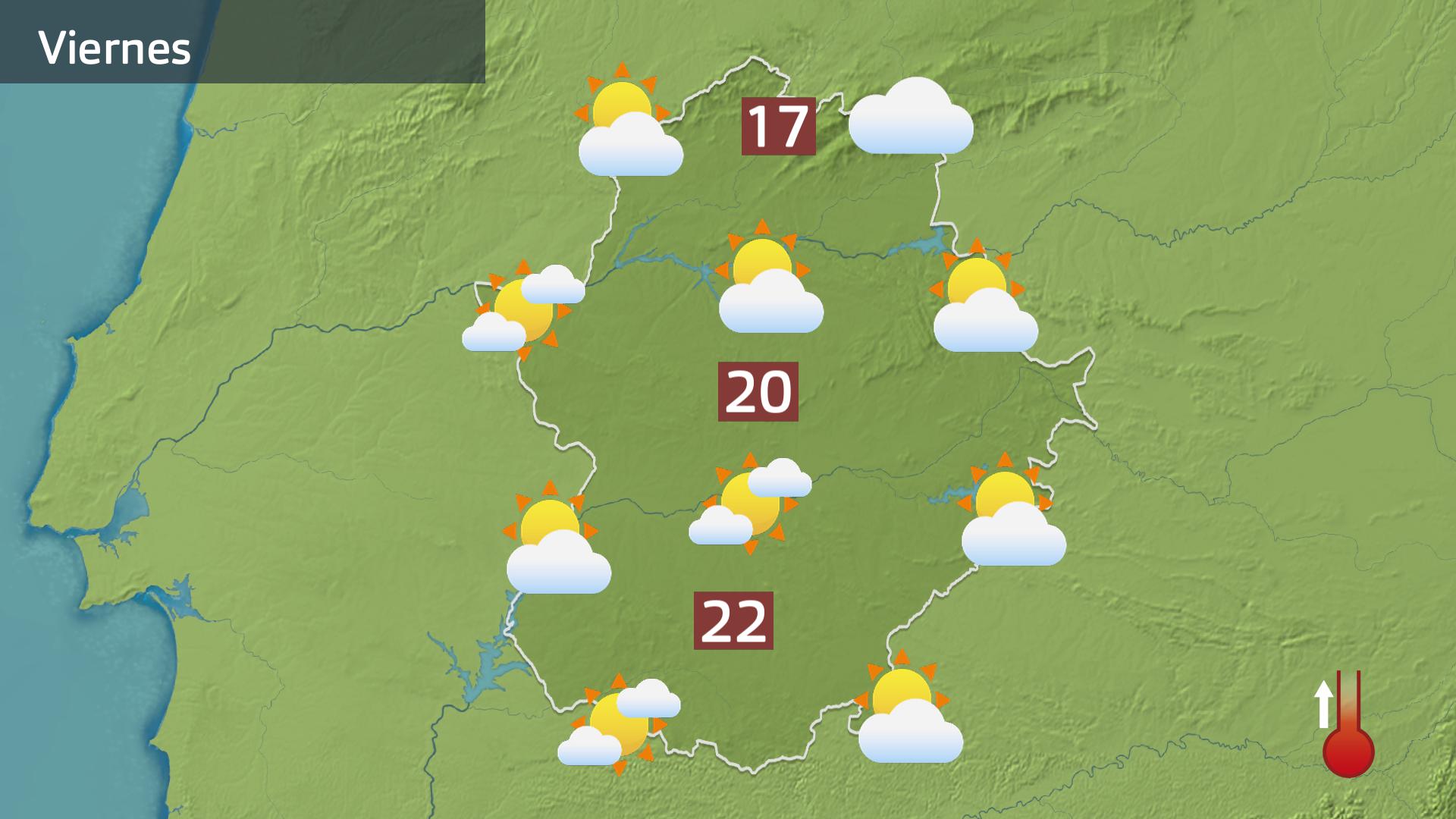 Eso en las mínimas, en las máximas ojo, porque la tarde anuncia valores hoy de más de 22 y hasta 23 grados en algunas estaciones y en general temperaturas que se moverán por encima de los 17-20 grados ya en prácticamente toda Extremadura. Unos valores más propios de abril que de esta recta final de noviembre.