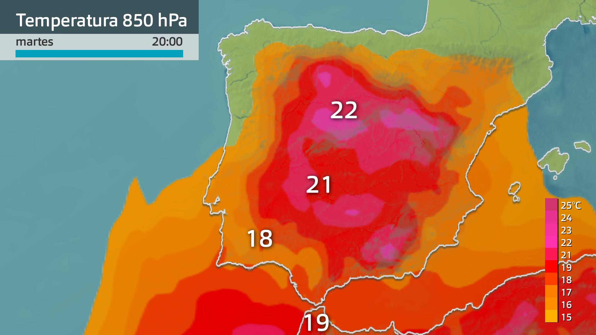 Y esa temperatura seguirá subiendo los próximos días, lo cual se traducirá en temperaturas más elevadas por le día y sin bajar demasiado por la noche, o durante las madrugadas. Para este martes, las mínimas se quedarán muy altas. Por encima de los 16 grados en zonas del norte, este y sur de la región. Pero superando los 20 ºC en zonas del llano, el Guadiana, el Tajo y la Serena.