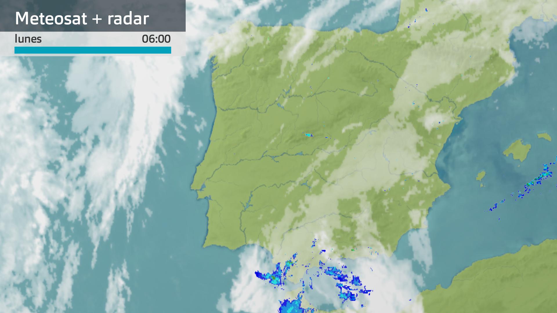 Chubascos y algunas tormentas puntuales que a medida que avance la segunda mitad de este lunes asomarán también por zonas del centro, de la mitad este y ya a partir del tramo final de la tarde por el norte, por donde acabaremos el día con bastante más actividad. Precipitaciones algo dispersas las que esperamos para hoy aunque de manera puntual podrán descargar de nuevo con cierta intensidad, sobre todo a medida que avance la tarde.