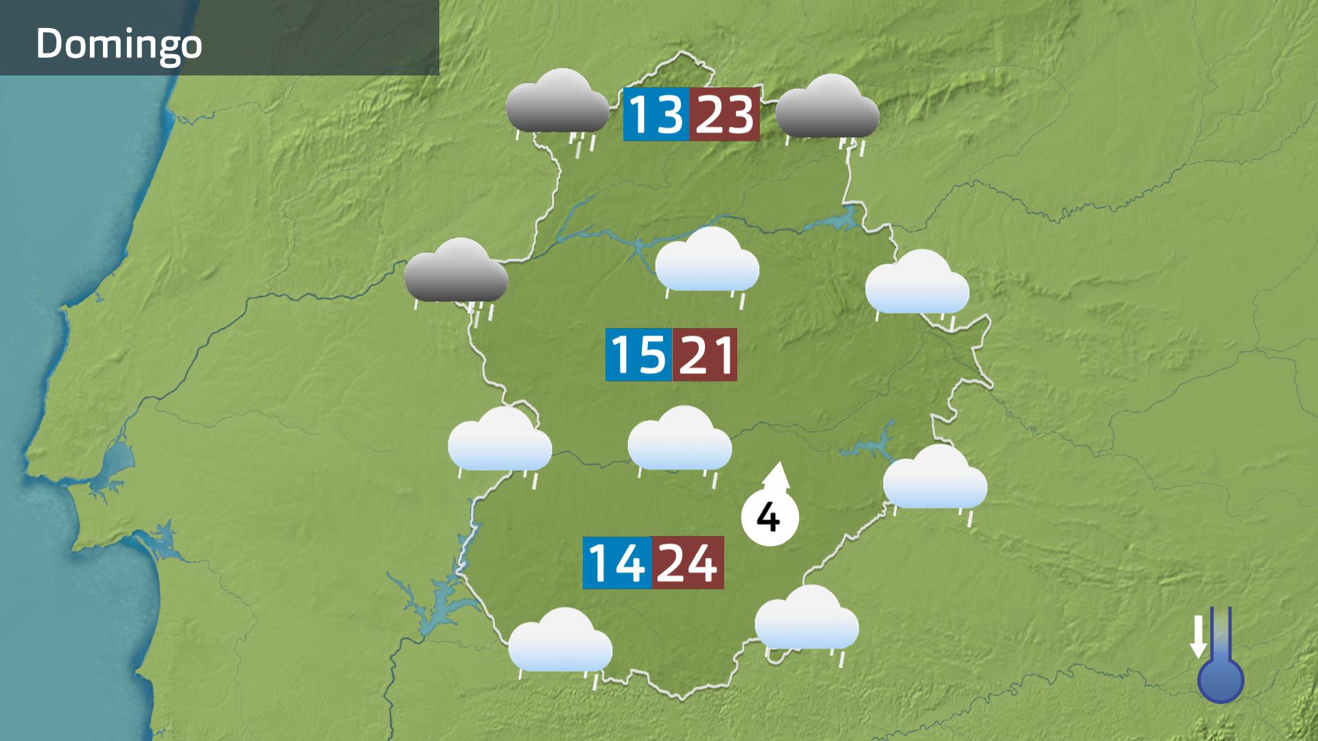 Con esta situación, este domingo amaneceremos con cielos nubosos y con lluvias de carácter débil, que pueden ser más moderadas en el tercio occidental y norte. A medida que avance el día, estas lluvias se irán desplazando hacia el este, dejando el cielo más abierto por las comarcas más occidentales, ya al final del domingo. Un sistema frontal que vendrá acompañado de viento moderado de sur y suroeste, con rachas más fuertes, y que irá rolando a este en la segunda mitad del día.