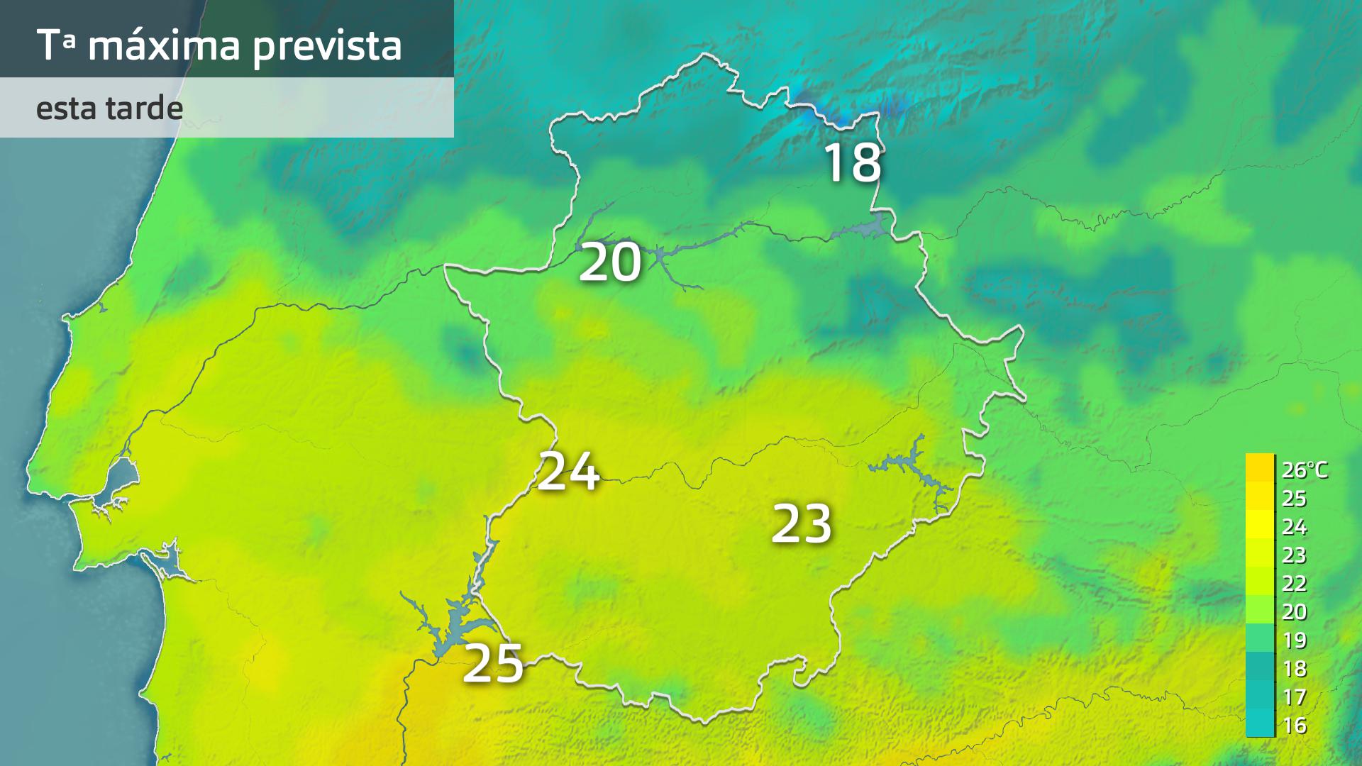 Eso en las mínimas en las máximas que repuntarán ligeramente por la mitad sur sobre todo volverá a costar esta tarde que pasemos de los 24-25 grados. Eso en las zonas por donde más suba el termómetro, en muchas estaciones del tercio norte sobre todo volveremos a hablar de temperaturas por debajo de los 20-22 grados esta tarde.