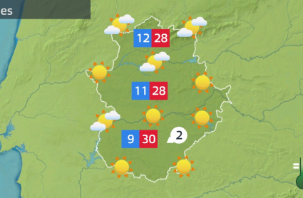 Las máximas volverán a repuntar de forma discreta. Rozaremos los 30 grados en las Vegas del Guadiana y en el suroeste de Badajoz.