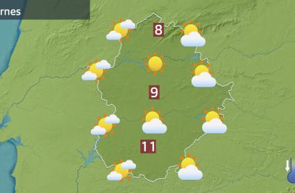 A lo largo de mañana la nubosidad de tipo bajo se irá rompiendo, pero llegará más nubosidad desde el oeste debido al avance de una borrasca que nos dejará lluvias a partir de mañana. Las máximas bajan en las dos provincias. En las cumbres apenas llegaremos a los 5-6ºC y en el valle del Guadiana, los 10-12. El viento será del este flojo.