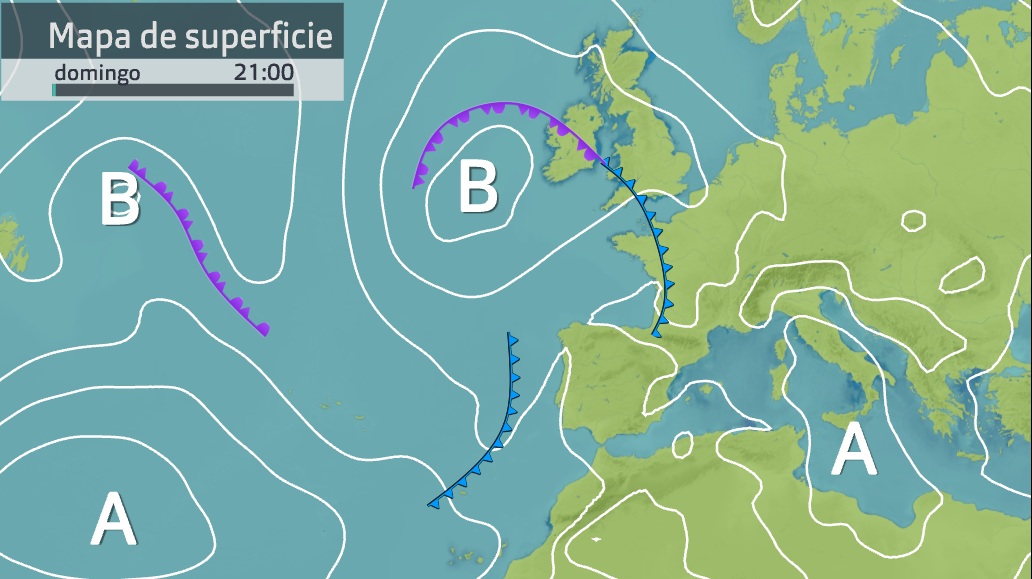 El mapa isobárico previsto para esta noche nos muestra el avance de un línea frontal desde el oeste que nos traerá más nubes a la región, además de los vientos de poniente, frescos y húmedos.