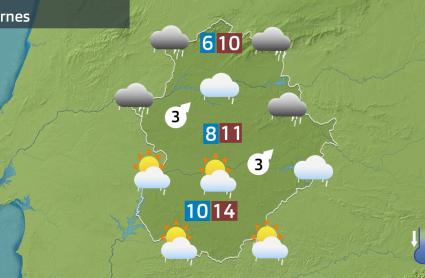 Así, la jornada del viernes comenzará con muchas nubes en la región, sobre todo en la provincia de Cáceres donde lloverá con ganas en las zonas de montaña. En la pacense se darán lloviznas, más probables en las sierras. Durante la tarde se abrirán algunos ratos de sol pero la posibilidad de precipitaciones se mantendrá. La cota de nieve bajará a los 1000 metros a últimas hora en Gredos y a los 1100 en las sierras del este. El viento será del sur y del suroeste.