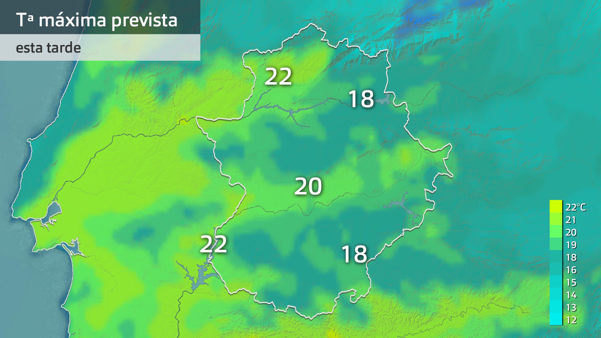 Donde sí se notará algo más la subida será en las máximas que esta tarde ya no solo pasarán de los 18-20 grados en todo el llano, como en la tarde de ayer, sino que se irán incluso hasta la raya de los 22 en algunas zonas de la mitad sur. Temperaturas repetimos más propias de finales de abril o principios de mayo incluso que de febrero.