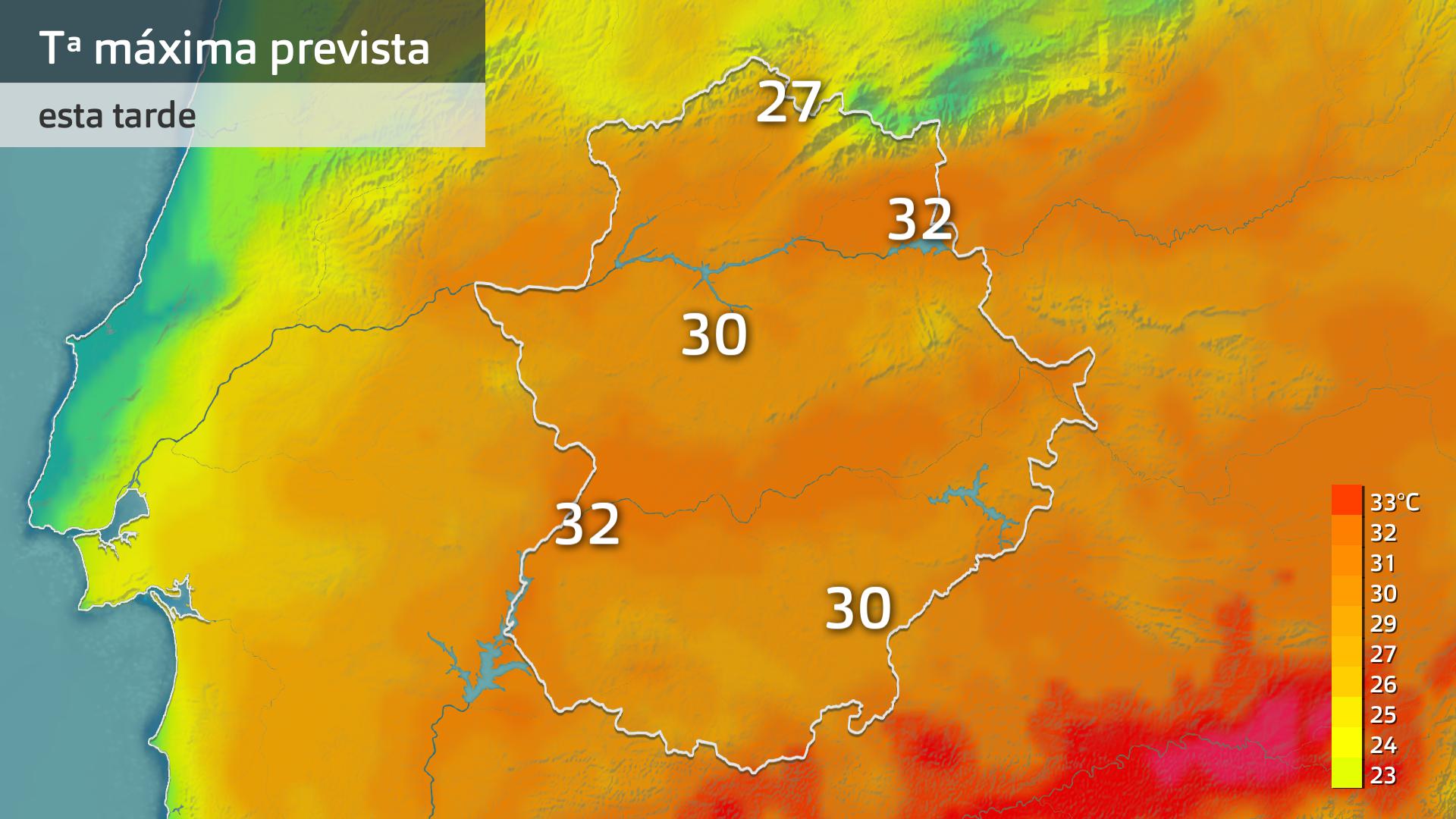 Hoy todavía no llegaremos a tanto pero los termómetros repuntarán de nuevo y para esta tarde volveremos a ver temperaturas por encima no solo de los 30, sino de los 32 grados incluso en algunas zonas del llano. Valores algo por encima de los propios de estas fechas.