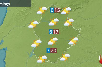 Las temperaturas máximas de esta tarde de sábado han estado en la horquilla de los 16 a 20ºC en la mayoría de las localidades de la región. Hasta 21 se han marcado en Badajoz y sólo 12 en Piornal. También han llegado nubes altas por las comarcas del suroeste.