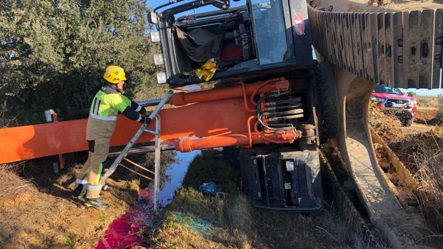 Esta mañana, alrededor de las 09:15 horas, se ha producido un accidente en el término municipal de Valdivia. Una retroexcavadora que realizaba trabajos en la zona ha volcado por causas aún desconocidas, dejando atrapado en su interior al conductor, que ha sufrido una luxación en el hombro en estado grave.