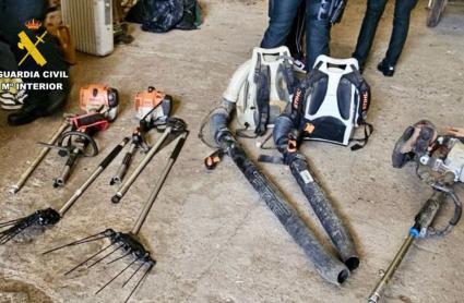 Ante la reiteración de estos delitos, el Equipo ROCA de la Guardia Civil inició una investigación que llevó a dos sospechosos residentes en Arroyomolinos y Trujillo, ambos con antecedentes delictivos. Las pruebas recopiladas vincularon a los detenidos no solo con los robos en vehículos, sino también con un asalto a una nave agrícola en Arroyomolinos, de la que sustrajeron herramientas de valor, como planeadoras, vibradores y sopladores.