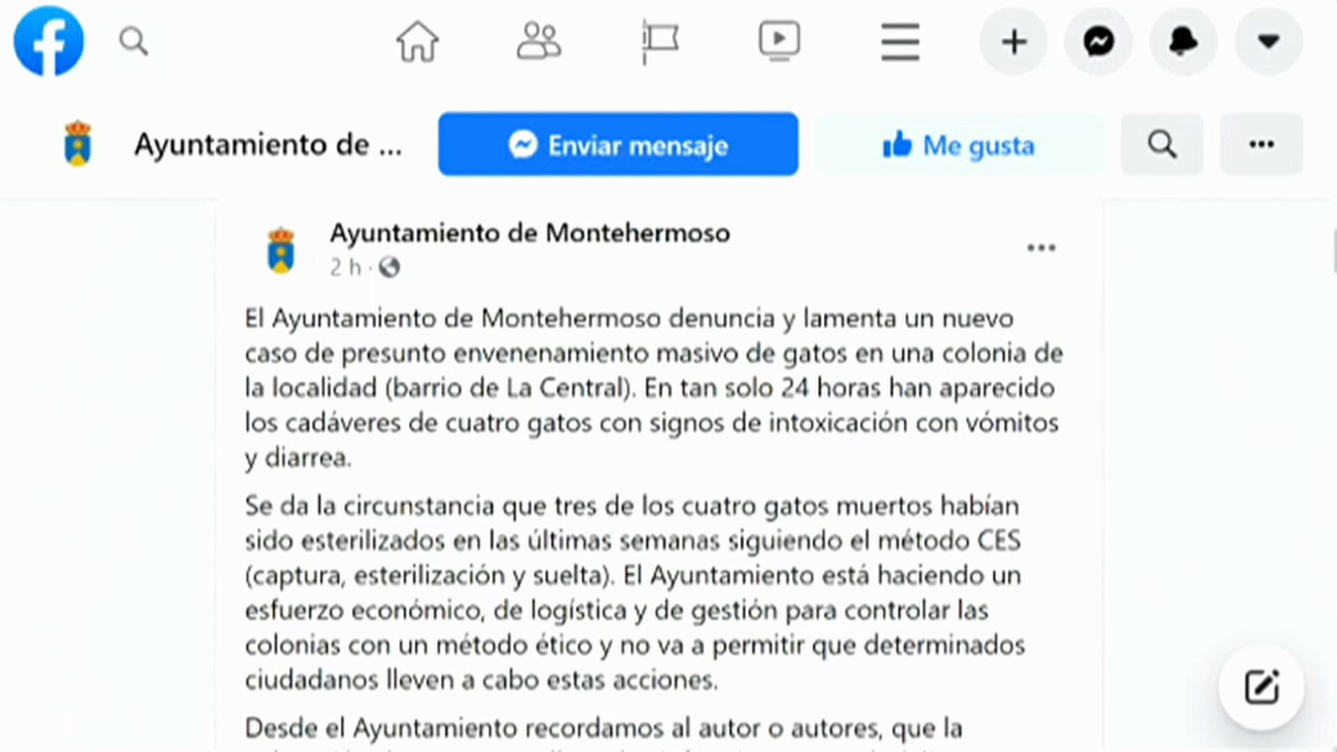 El ayuntamiento ha publicado en redes sociales la foto de los animales. En una nota explica que tres de los cuatro gatos muertos habían sido esterilizados en las últimas semanas siguiendo el método captura, esterilización y suelta. Desde el consistorio aseguran que no van a permitir este tipo de acciones. Además piden "máxima precaución a los vecinos del barrio con los niños que habitualmente juegan en la calle, así como a los propietarios de perros para que vigilen que no ingieran nada de comida que esté en la vía pública".