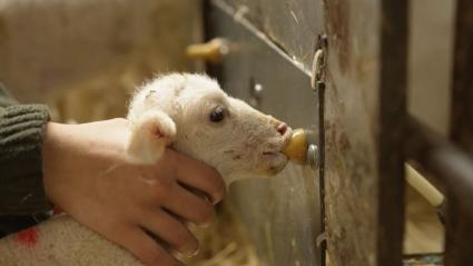 Esther enseña a los borregos más pequeños a mamar de la máquina nodriza